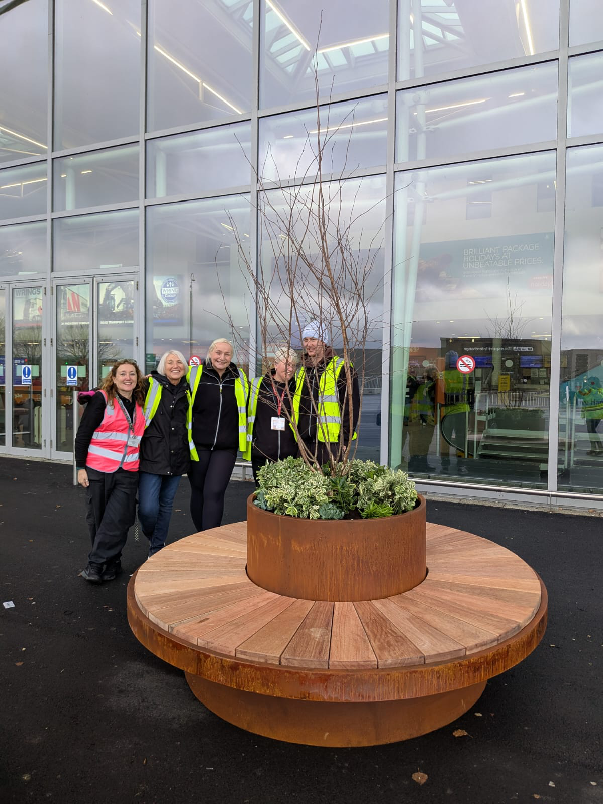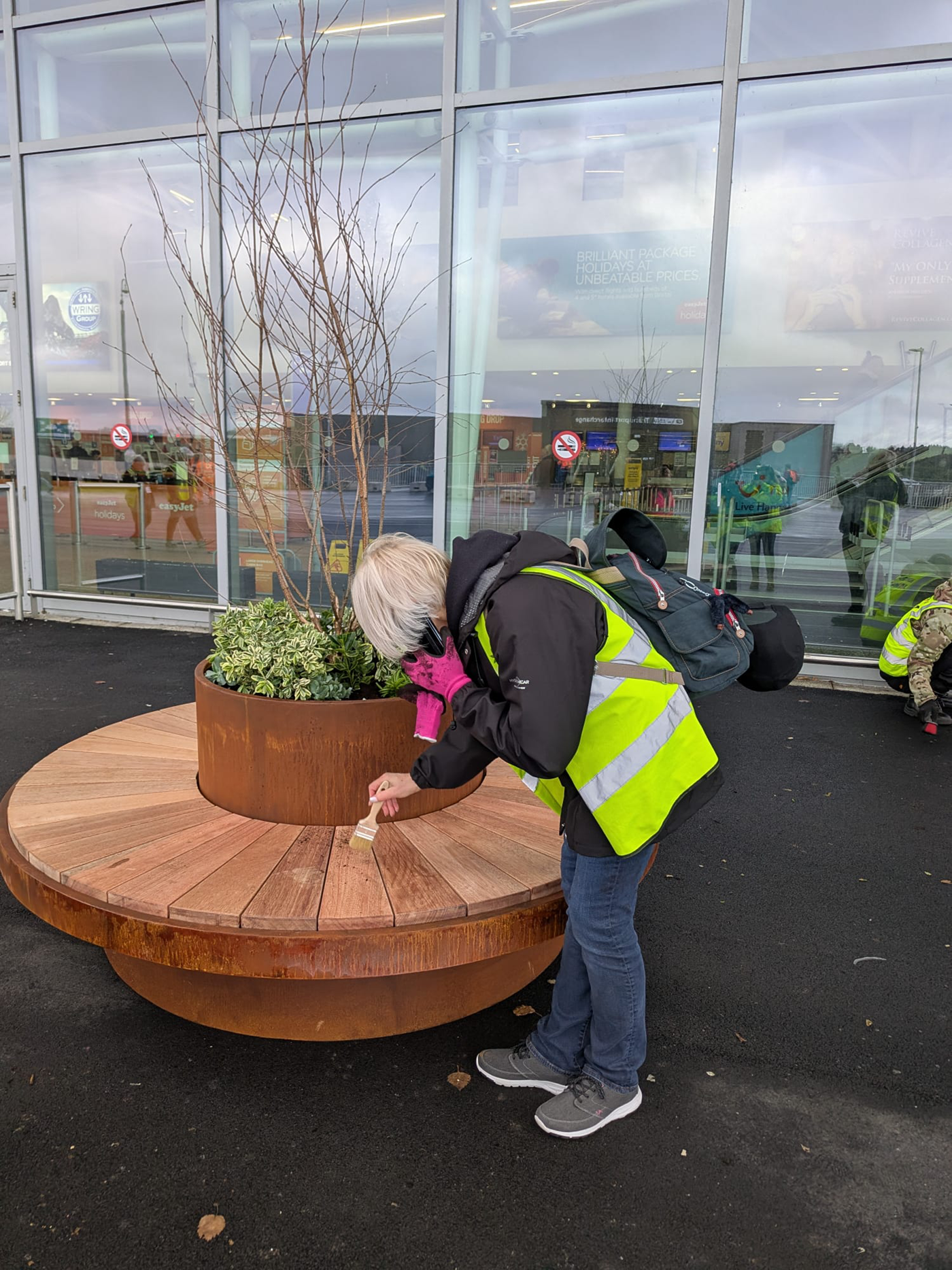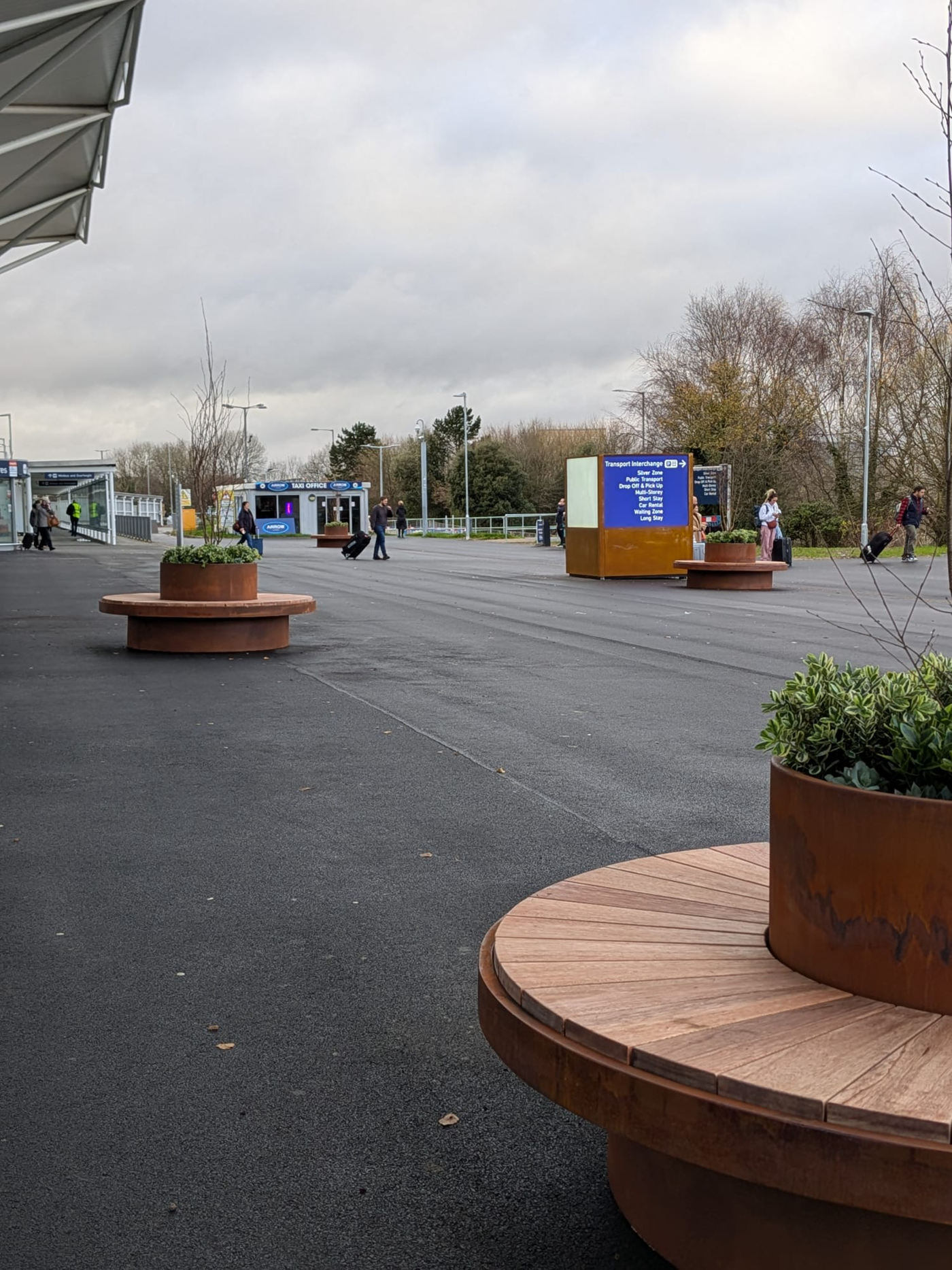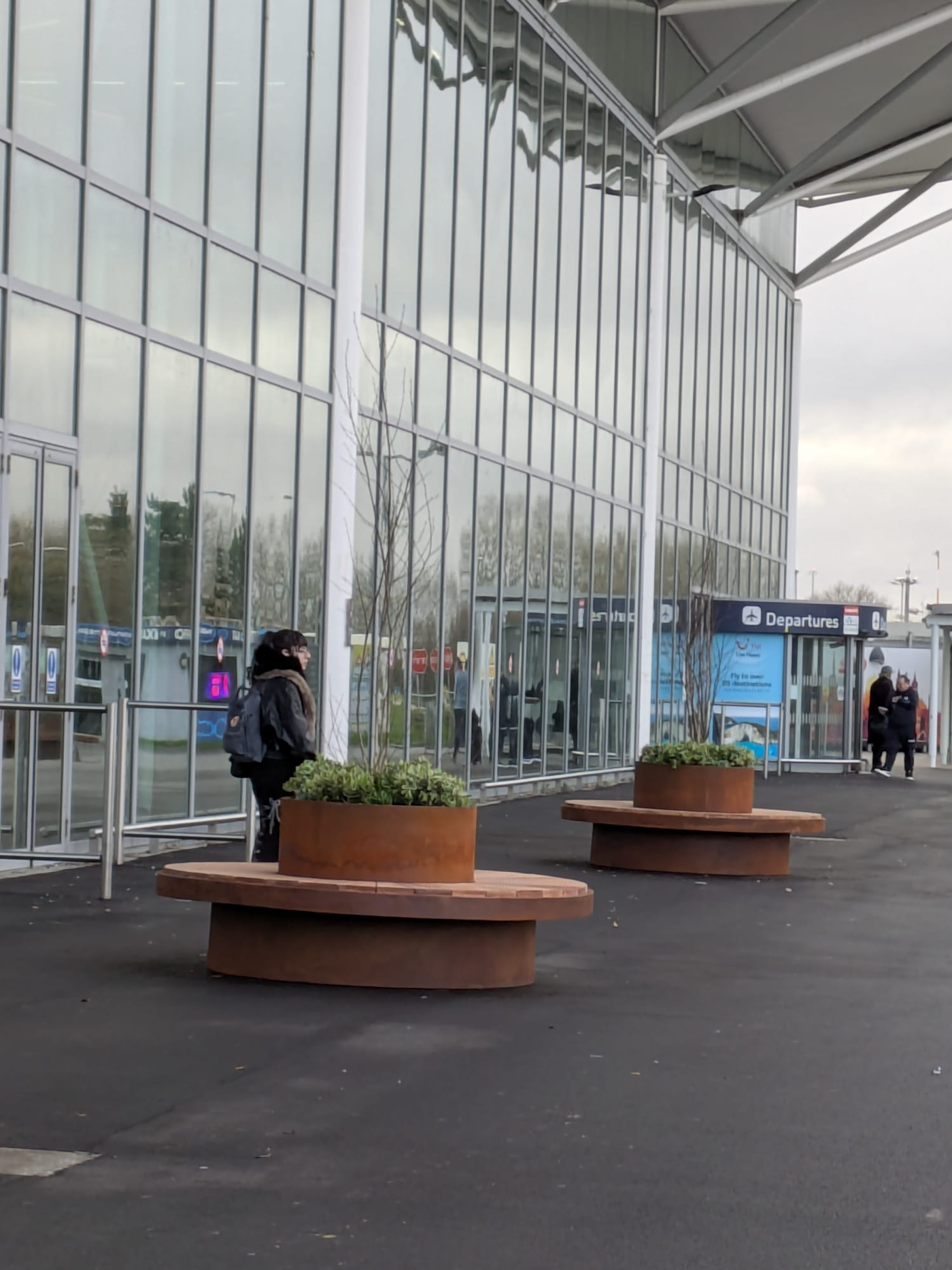 The completed installation delivers a striking visual statement that elevates the airport’s outdoor seating areas. The furniture provides the character and depth of corten steel, paired with the performance benefits of fibreglass — a practical, durable solution ideally suited to a demanding public environment.