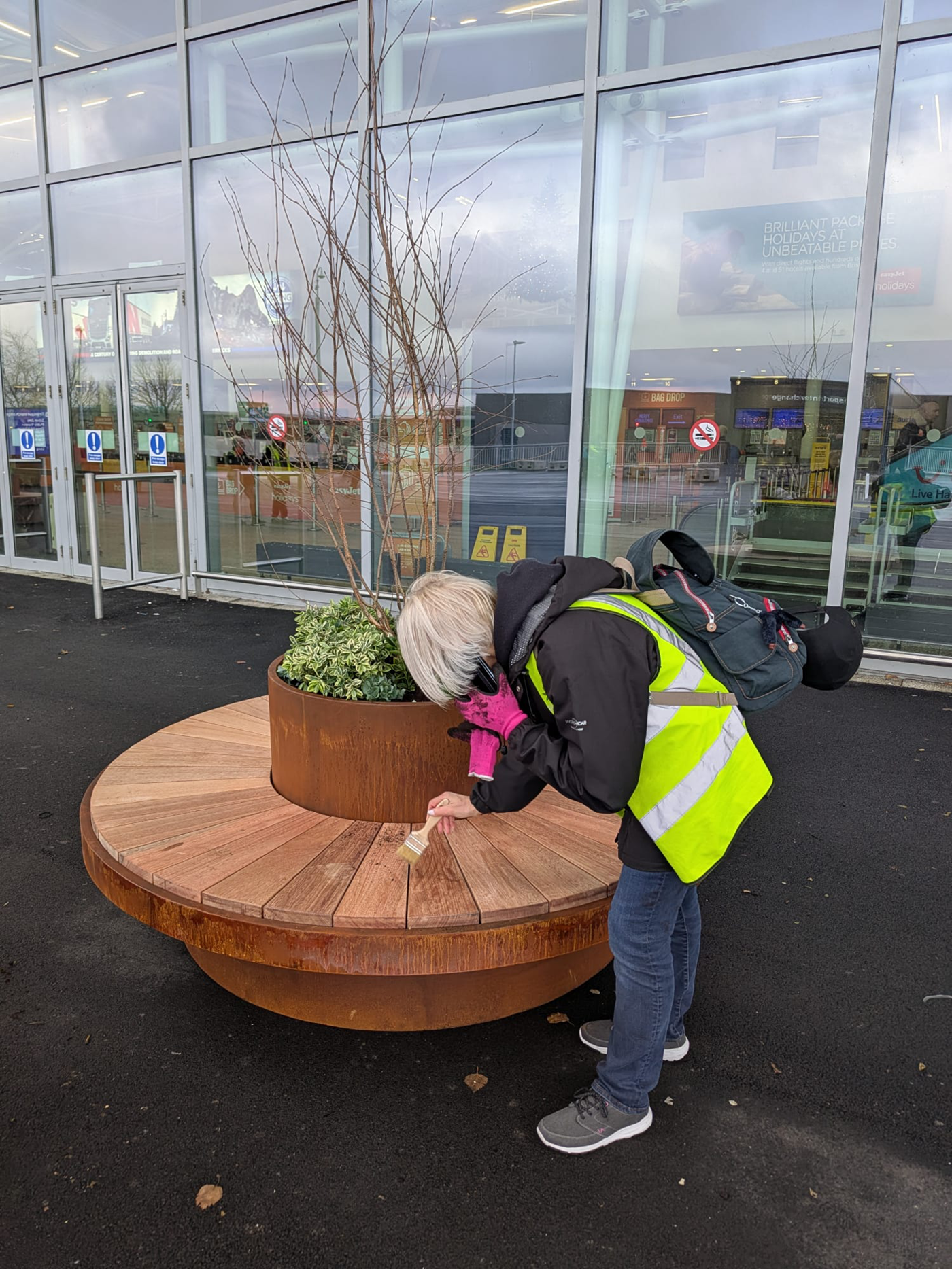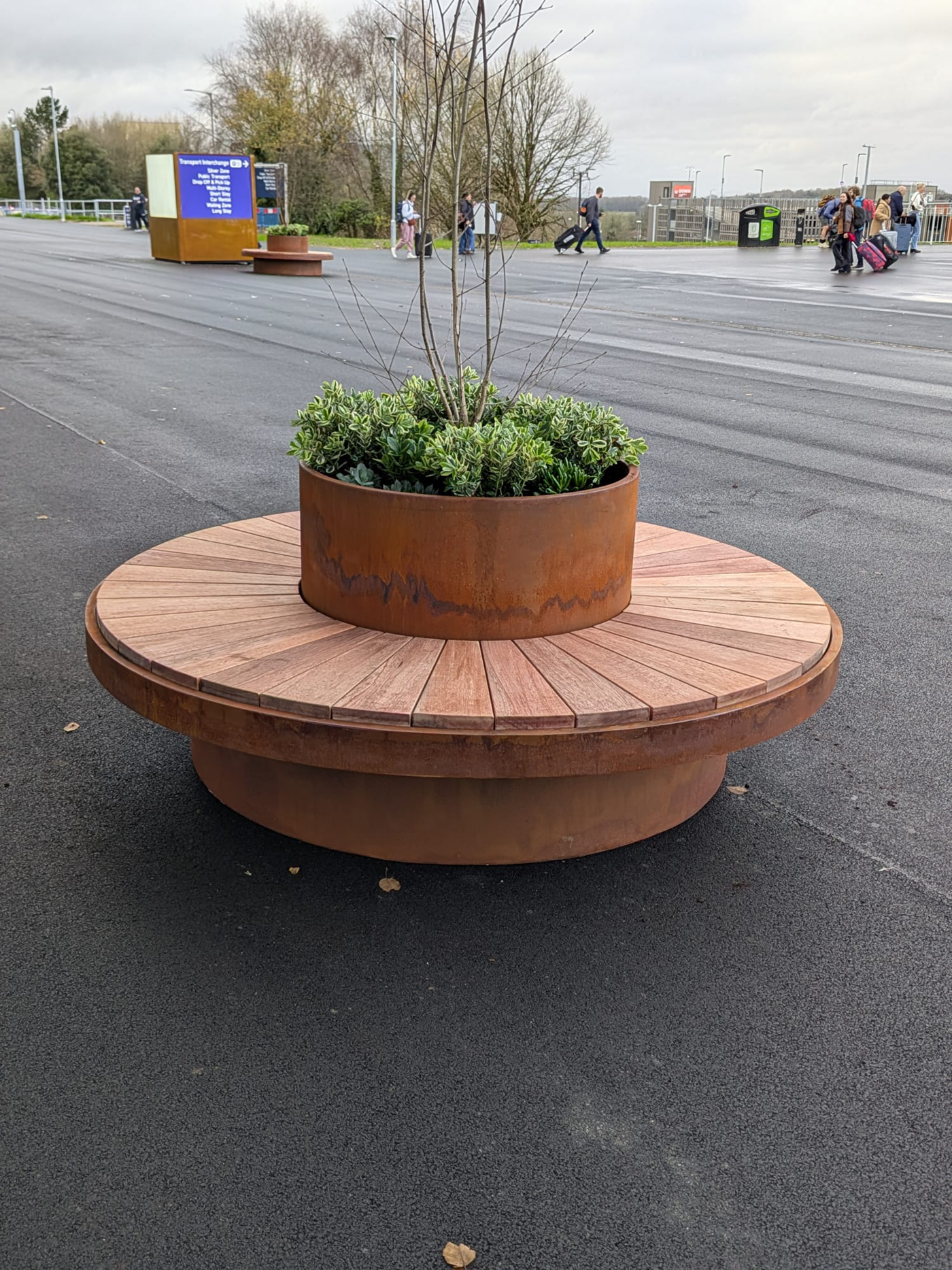 The space was designed by Clarissa Conner of Ambius, who integrated the Terrace range seamlessly into the wider landscape concept. The corten‑effect finish adds warmth and texture to the scheme, creating a welcoming environment for travellers while maintaining a clean, contemporary aesthetic.